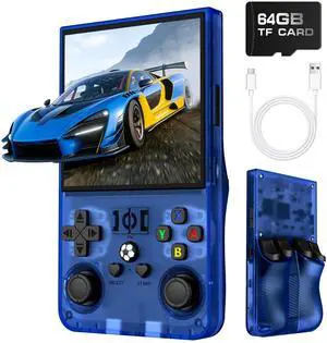 R40 Retro Handheld Game Console - Open Source System,3.5" IPS Screen, 18,000+ Classic Games, 128G TF Card, 3000mAh Battery, Portable Gaming Player for Travel, Retro Gaming Console, Blue