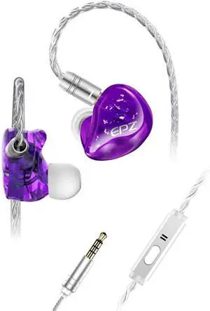 EPZ K1 Wired in-Ear Earphones Molded with EPG 3D Printer 1BA + 1DD Large 9.2mm Titanium Plated Dynamic Driver 3.5mm Jack HiFi Sound Noise Reduction Purple