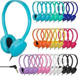 30 Pack Bulk Wired Headphones, On Ear with 3.5mm Jack, 4ft Tangle Free Cable, Comfortable Fit, Affordable and Cost Effective, Ideal for School Classroom Testing Students Events Groups, Mix