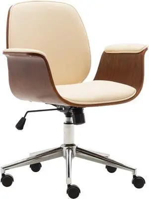 vidaXL Cream Artificial Leather Office Chair with Bent Wood Frame and Adjustable Height - Comfortable Seating for Workplace or Home Office