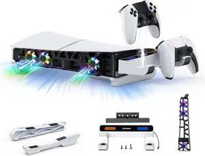 NexiGo PS5 Slim Horizontal Stand with Charging Station for Dual_Sense&Dual_Sense Edge Controllers,Silent Cooling Fan w/Intelligent Temperature Control, LED Indicators, White