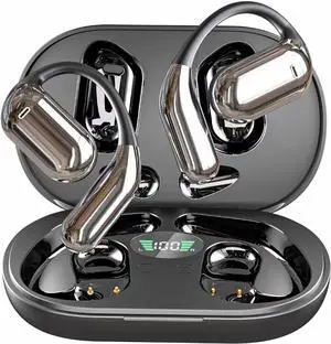 Bone Conduction Open Ear Headphones Bluetooth 5.3 Wireless Earbuds 12hrs Playtime Wireless Charging Case Digital Display Sports Ear Buds with IPX5 Waterproof Fingerprint Touch for Fitness