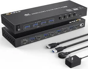 USB 3.0 KVM Switch HDMI 4 Port Support 4K@60Hz 2K@120Hz RGB 4:4:4 Simulation EDID, HDMI USB Switch 4 in 1 Out and 4 USB 3.0 Port for Keyboard Mouse Printer,with Controller,USB3.0 Cables and HDMI Cable