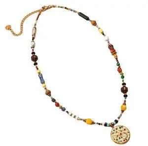 Bohemian Necklace For Women, Chunky Beaded Crystal Jewelry, 18.9 In Retro Ethnic Chain