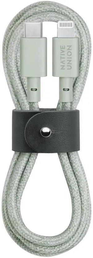 Native Union Belt Cable USB-C to Lightning - 4ft Ultra-Strong Reinforced Charging Cable with Leather Strap [MFi Certified] Compatible with iPhone 14, iPhone 13 and Earlier (Sage)