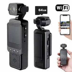 DIXSG Mini Body Camera, 1080P FHD WiFi Video Camera with Audio and Photograph, Clip Pocket Vlog Camera for Daily Work Serving Records,180° Rotating Head, 120° Wide Angle, Built-in Flash, 64GB Card