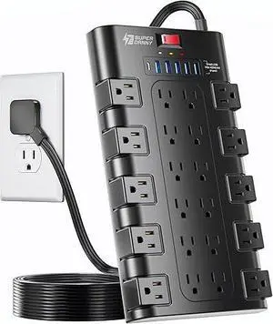 Power Strip Tower Wireless Charger, SUPERDANNY Surge Protector Tower, 10A 1080J Charger Station with 9 Outlets & 4 USB Ports, Extension Cord 10ft for Laptop Phone Black and Blue