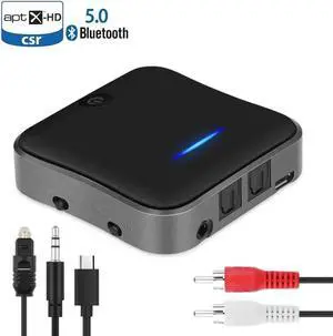 WISDUM Bluetooth 5.0 Transmitter Receiver aptX HD Low Latency Audio 3.5mm Aux/RCA/SPDIF Bt Music Wireless Adapter for TV/Headphone/Car