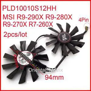 2pcs/lot PLD10010S12HH 95mm 4Pin VGA Fan For MSI R9-290X R9-280X R9-270X R7-260X Graphics Card Fan