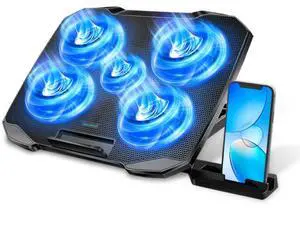 F2 PLUS Laptop Cooling Pad with Phone Stand, 5-Core Gaming Notebook Cooler 4x100mm + 1x60mm Fans, 2 USB Ports, 2600 RPM for 15-17 Inch Laptops COOLCOLD