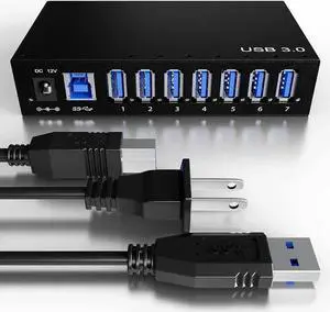 Vszerda 7 Ports USB Hub 3.0 Powered USB Hub Spllitter - High-Speed Data Transfer - Aluminium Alloy, with Power Adapter 12V/3A/36W, HDD, USB Flash Drive, Laptop, Mouse, Console