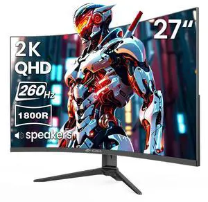 CRUA 27'' Curved Gaming Monitor 260Hz/240Hz, QHD 1440P 1800R VA Panel Computer Monitor with Built-in Speakers, Support AMD FreeSync, 120% sRGB, Blue Light Filter, HDMI2.0 & DP1.4, Wall Mountable-Black