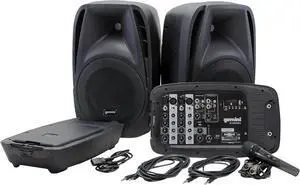 Gemini Portable PA System with Stands - 600W Bluetooth Speaker System with 6-Channel Mixer, Dual 10" Speakers, Mic & Cables - Complete All-in-One Kit for Small Events, DJs & Karaoke (ES-210MXBLU-ST)