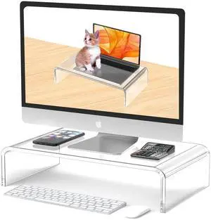 Beimu Acrylic Monitor Stand Riser Acrylic Laptop Stand Riser PC Holder Clear Computer Monitor Stand for Desk White Laptop Stand for Desk Compatible with iMac MacBook All Notebooks