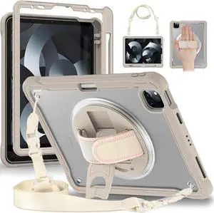 JAENFONG Case for iPad Pro 12.9-inch 2022 6th M2 /2021 (5rd Generation) / iPad Pro 12.9" 4th/3rd Gen Heavy Duty Rugged Shockproof Tablet Cover with 360° Rotating Hand Strap & Shoulder Strap, Khaki