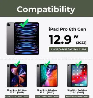 iPad Pro Case 12.9 6th/5th/4th Generation with Pencil Holder | Heavy Duty Hybrid Dropproof Rugged Protection Hard Cover W/Screen Protector Shoulder Strap for iPad Pro 12.9 2022/2021/2020/2018