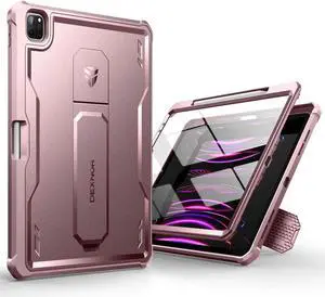 Dexnor for iPad Pro 12.9 Inch Case 2022/2021/2020(6th/5th/4th), Heavy Duty Shockproof Dual Layer Full-Body Bumper Protective Cover with Built-in Screen Protector & Kickstand & Pen Holder - Matte Pink