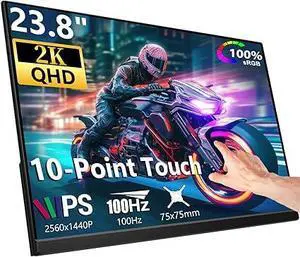 23.8 Inch 2K 100Hz Large Portable Touchscreen Monitor 100% sRGB IPS Portable Touch Display QHD w/90° Adjustable Stand USB-C HDMI Laptop Monitor Desktop 2560X1440