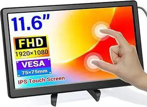 11.6 Inch Portable Monitor - IPS Capacitive Touchscreen Monitor with HD VGA Port, 1920x1080P LCD Display Built-in Dual Speakers Touch Screen for Raspberry Pi 5/4/3, PS Xbox, Windows 11/10/8/7