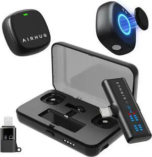 AIRHUG Wireless Lavalier Microphone for iPhone/Android/PC, 60H Battery, 48KHz 24Bit, Plug-Play Lightning/USB-C, 3 Recording Modes, AI Noise Cancellation, Lapel Mic for Vlog, YouTube, Interview
