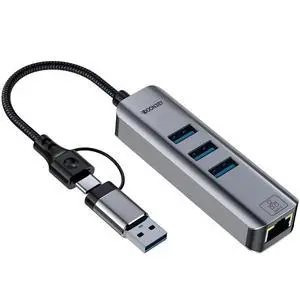 2-in-1 USB/Type-C to Ethernet Adapter with 3-Port USB 3.2 Hub 5Gbps Network Card, RJ45 Gigabit LAN Port, Multi-Function Expander for Laptop/PC/MacBook, Plug-and-Play