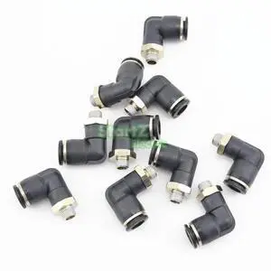 10Pcs 4mm Plastic Elbow Pneumatic Fitting PV-04 Quick Tube Connector Black