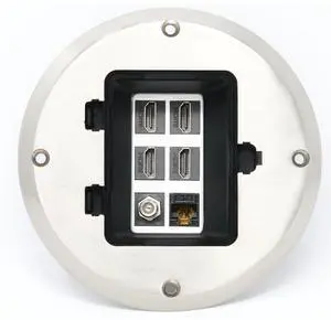 RiteAV - 4 Port HDMI 1 Coax Cable TV- F-Type 1 Cat6 Ethernet Floor Box - Stainless Steel