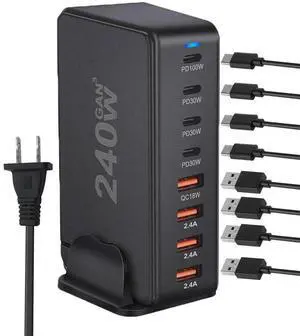 DIXSG 8 Port USB C Charger 240W PD 3.0 QC3.0 USB C Desk Charger Portable Adapter Charging Station Hub Compatible with iPhone 15/14/13/13 Pro Max/MacBook/iPad Pro/Galaxy