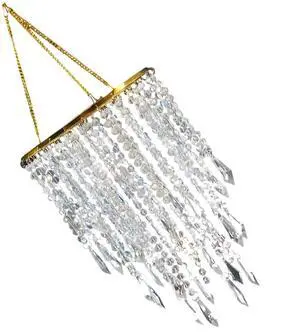 3 Tiers Acrylic Beaded Chandelier Shade, 7.9 X 7.9 X 13.8 In, Iridescent Ceiling Light Pendant Lampshade With Acrylic Beads For Home Decor, Wedding, And Party