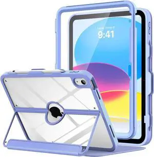 MoKo for iPad 11-inch (A16) 11th Generation Case 2025/ iPad 10th Generation Case with Pencil Holder 2022 10.9 inch, Built-in Screen Protector Clear Back, Multi Angle Viewing Stand, Lavender