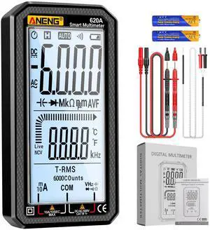 Digital Multimeter 6000 Counts Auto Ranging Voltmeter with LCD,Measures Ac/DC Current,Voltage,Resistance Temperature, for Electricians,DIY (620A Black)