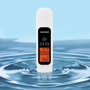 TDS Meter Digital Water Tester, INKBIRD Professional Electronic 3-in-1 TDS, Temperature and EC Meter, 0-4995ppm, Ideal ppm Meter for Drinking Water, Aquariums, and More Lab Viscometers(White)