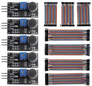 5PCS Microphone Sensor High Sensitivity Sound Detection Module LM393 with 240pcs Breadboard Jumper Wires 20cm 10cm