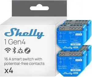 Shelly 1 Gen4 | WiFi, Bluetooth & Zigbee Smart Relay Switch with Dry Contacts | 1-Channel 16A | Compatible with Google Home, Alexa & SmartThings | No Hub required | Home Automation 4 pack