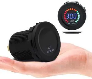 Universal Digital Display Voltmeter Waterproof Voltage Meter Green LED for DC 12V-24V Automotive Replacement Volt Meter Gauges