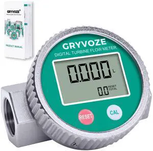 GRYVOZE 3/4 Inch Digital Turbine Fuel Flow Meter, 0.8-13.2 GPM Inline NPT Thread Flowmeter for Water, Diesel, Gas Oil, Gasoline, Kerosene, Methanol, and Other Liquids-Supports Gallon, QTS, PTS, L, m³- Brand: Meterk