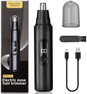 Nose Hair Trimmer for Men Rechargeable, Electric Nose and Ear Hair Trimmer, Professional Nose Clipper, LED Display, Waterproof, Portable Travel Size, Painless, Black