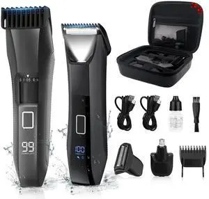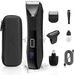 Beatslm Beard Trimmer for Men, Groin & Body Hair Trimmer, Electric Shaver, Nose & Ear Hair Clippers, 4 in 1 Men's Grooming Kit, Waterproof Wet/Dry Groomer with Travel Case, LED Display