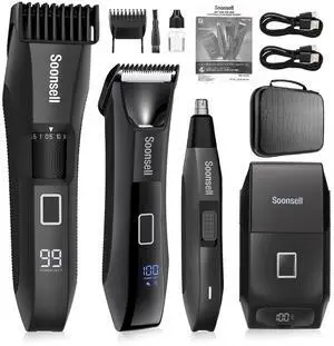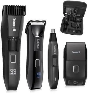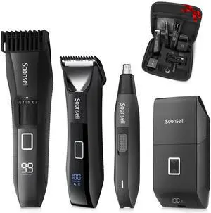 Soonsell Manscape Beard Trimmer for Men,Ball Shaver,Nose Hair Clippers,Electric Razor,Hair Clippers for Men,4 IN1 Men's Grooming Kit,LED Display,Waterproof,Wet/Dry Trimmer