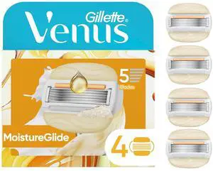 Venus MoistureGlide Women's Razor Blades, With Built-in Shave Gel Bars, 4 Razor Blade Refills