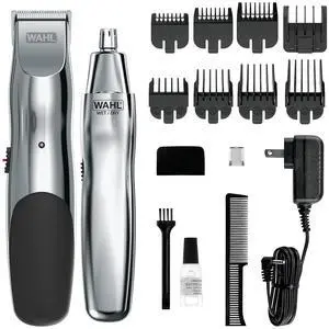 Wahl Groomsman Rechargeable Beard Trimmer kit for Mustaches, Nose Hair, and Light Detailing and Grooming with Bonus Wet/Dry Battery Nose Trimmer Model 5622v