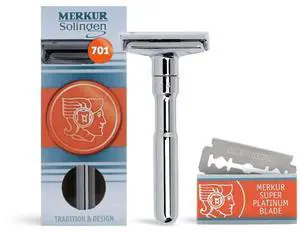 MERKUR FUTUR 701 Adjustable Double Edge Safety Razor - Bright Chrome | Adjustable Razor With Dial | Made in Germany | Plastic-Free | Snap-On Cap Design | Straight Bar
