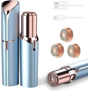 tuokiy Facial Hair Removal for Women, Painless Face Shaver for Womens, Face Razors for Lip, Chin with USB Rechargeable, Blue 3 PCS Heads