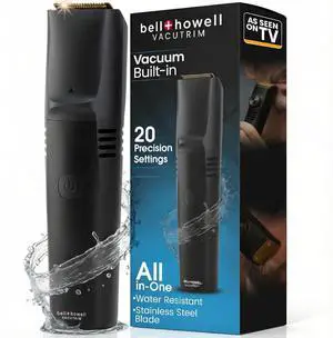Bell+Howell Vacutrim Deluxe Cordless Mens Beard Trimmer, Rechargeable Electric Shaver with 20 Trim Setting and Built-in Vacuum for Mustache, Sideburns. Facial Hair, Black, 7.5", As Seen On TV