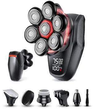 7D Rotating Head Shaver for Bald Men, Magnetic Detachable Head Shaver, IPX7 Waterproof Wet or Dry Electric Razor for Men, LED Display Rechargeable Shaving with Type-C Charge, Mens Gifts