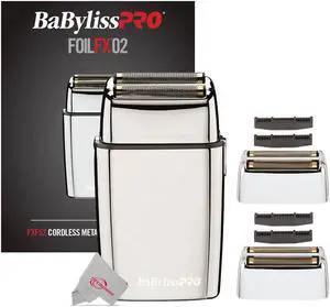 BaByliss PRO FOILFX02 Cordless Metal Double Foil Shaver + Two Pcs Replacement Foil Head and Cutters