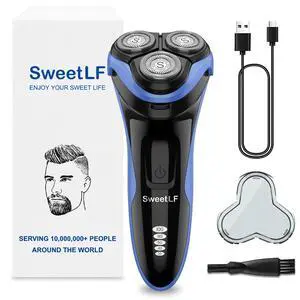 Electric Razor for Men, 2024 Mens Electric Shavers Rotary Replacement/Waterproof/Rechargeable, Electric Shaver for Men Cordless Floating Head Replaceable Blades, Portable Travel Razor Idea Men Gift