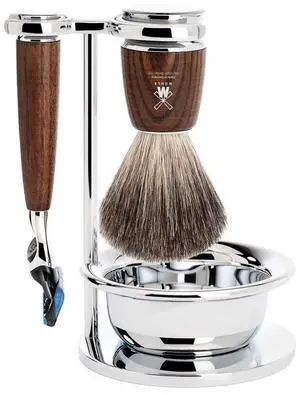 MÜHLE RYTMO Steamed Ash 4-piece Pure Badger 5-Blade Razor Modern Luxury Wet Shaving Set - Perfect for Every Day Use, Barbershop Quality Close Smooth Shave