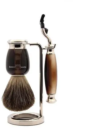 Edwin Jagger S81M582AMZ Imitation Light Horn & Nickel Classic Shaving Set with Pure Badger Shaving Brush and Mach 3 Razor for Shaving Cream or Soap for Men