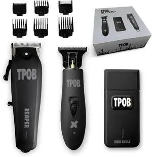 TPOB Slime 2 Black Clipper Trimmer Shaver Set Barber Hair Clippers for Men 6800 RPM with Rubber Case